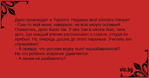 - А правда, что русские водку пьют неразбавленной?