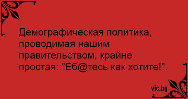 Демографическая политика, проводимая нашим правительством, крайне простая: "Еб@тесь как хотите!".