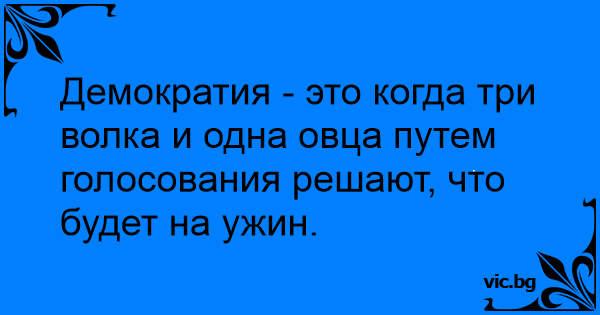 Демократия - это когда три волка и одна овца путем голосования решают, что будет на ужин.