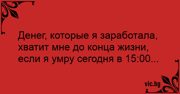 Денег, которые я заработала, хватит мне до конца жизни, если я умру сегодня в 15:00...