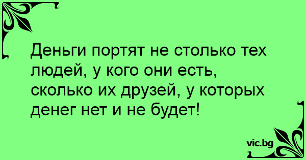 Деньги портят не столько тех людей, у кого они есть, сколько их друзей, у которых денег нет и не будет!