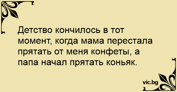 Детство кончилось в тот момент, когда мама перестала прятать от меня конфеты, а папа начал прятать коньяк.