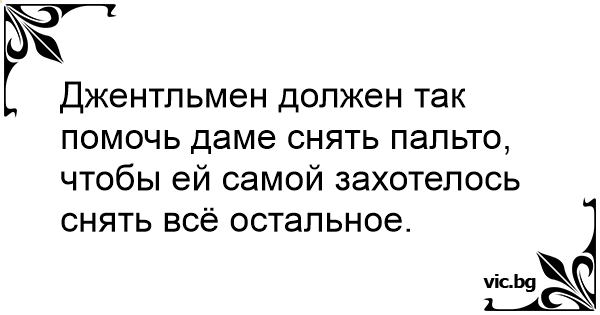 Джентльмен должен так помочь даме снять пальто, чтобы ей самой захотелось снять всё остальное.