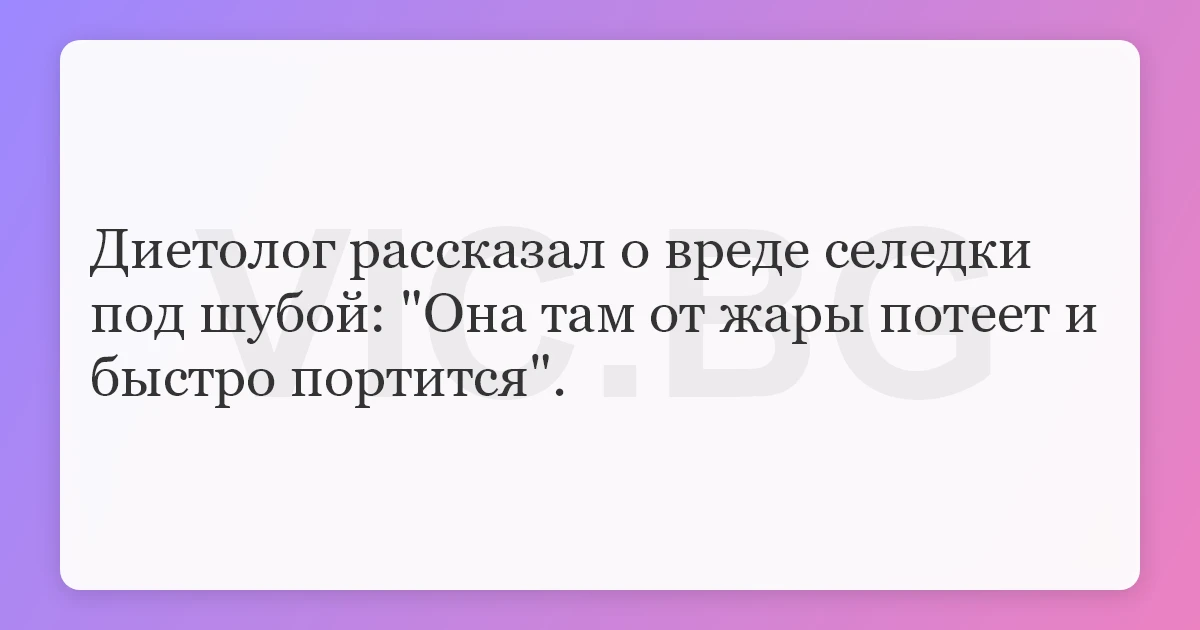 Диетолог рассказал о вреде селедки под шубой: "Она там от жары потеет и быстро портится". 6 0 0 Анекдоты