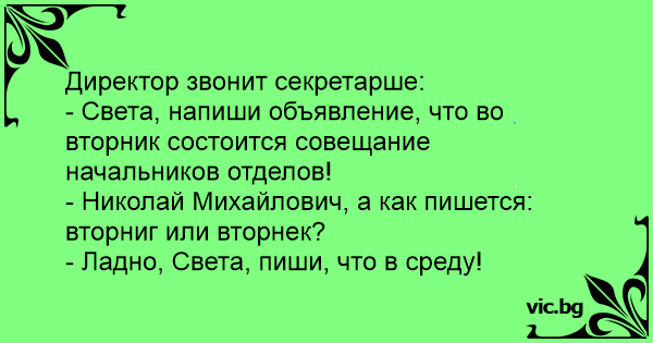 - Света, напиши объявление, что во вторник состоится совещание начальников отделов!