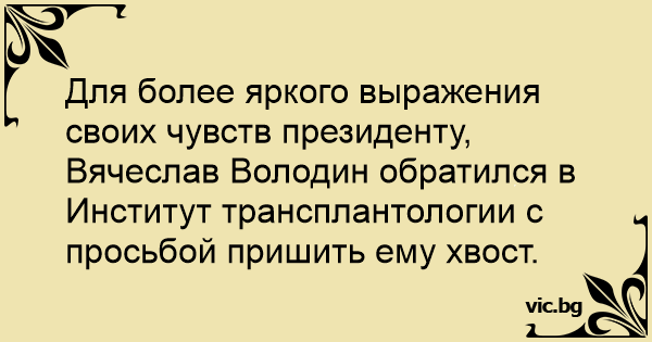 Для более яркого выражения своих чувств президенту, Вячеслав Володин обратился в Институт трансплантологии с просьбой пришить ему хвост.