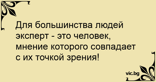 Для большинства людей эксперт - это человек, мнение которого совпадает с их точкой зрения!