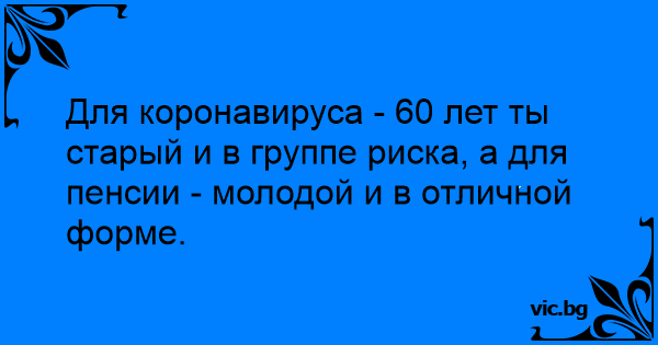 Для коронавируса - 60 лет ты старый и в группе риска, а для пенсии - молодой и в отличной форме.