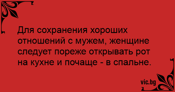 Для сохранения хороших отношений с мужем, женщине следует пореже открывать рот на кухне и почаще - в спальне.