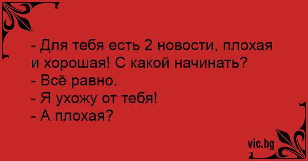 - Для тебя есть 2 новости,...