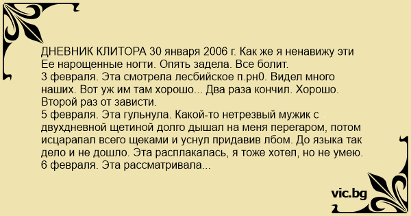 ДНЕВНИК КЛИТОРА 30 января 2006 г. Как же я ненавижу эти Ее нарощенные ногти. Опять задела. Все болит.
