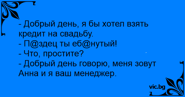 - Добрый день, я бы хотел взять кредит на свадьбу.