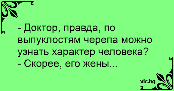 - Доктор, правда, по выпуклостям черепа можно узнать характер человека?