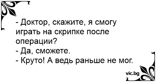 - Докторе, ќе можам ли да свирам виолина по операцијата? - Секако. - Еј супер, досега не можев!