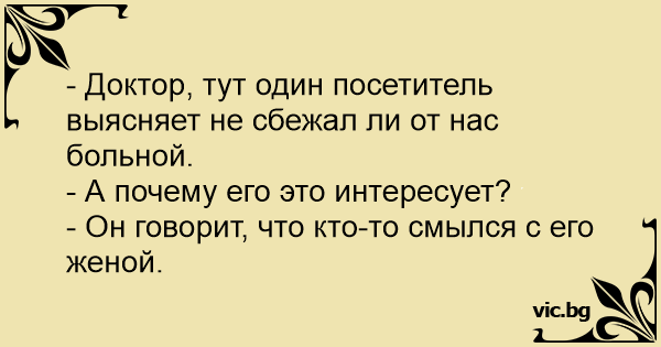 - Доктор, тут один посетитель выясняет не сбежал ли от нас больной.