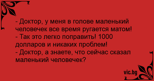 - Доктор, у меня в голове маленький человечек все время ругается матом!