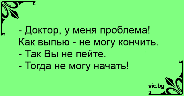 - Докторе, като пия, не мога да свърша.