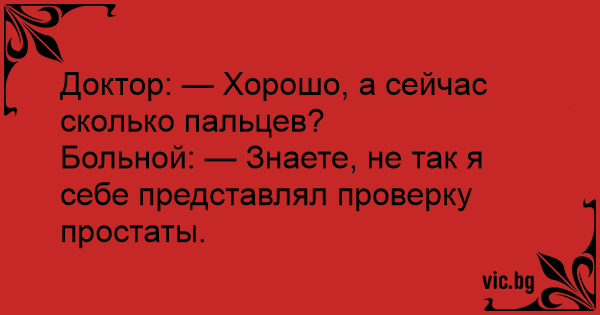 Больной: — Знаете, не так я себе представлял проверку простаты.