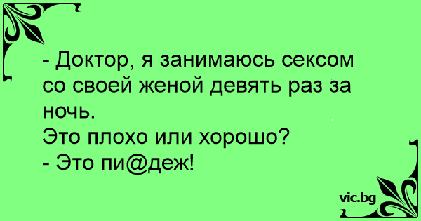 - Доктор, я занимаюсь сексом со своей женой девять раз за ночь.