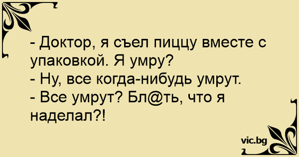 - Доктор, я съел пиццу вместе с упаковкой. Я умру?