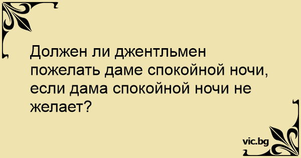 Должен ли джентльмен пожелать даме спокойной ночи, если дама спокойной ночи не желает?