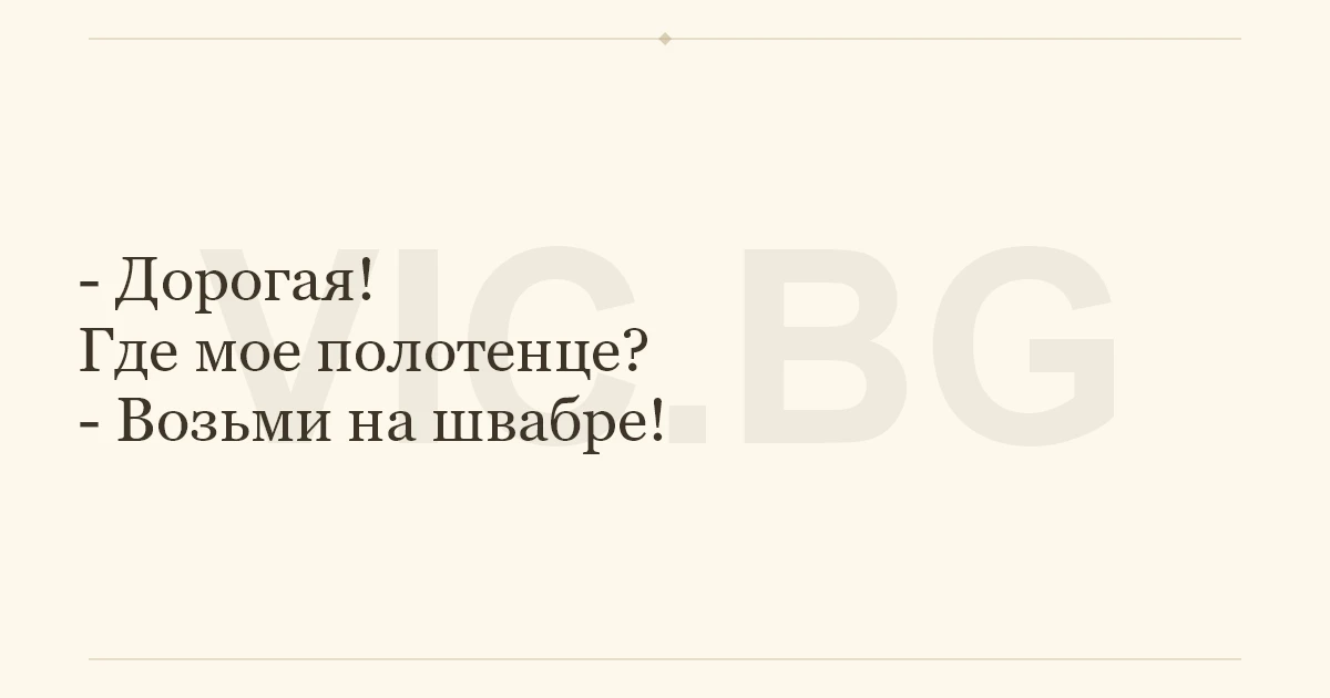 - Дорогая! Где мое полотенце? - Возьми на швабре!
