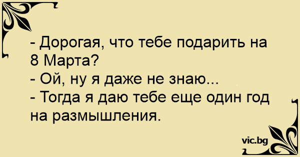 A boyfriend asks his girlfriend: "What gift would you like to receive during the St. Valentine's Day?" "Well, I don't know" she answers shyly. "OK, that I give you another year to think about it…"