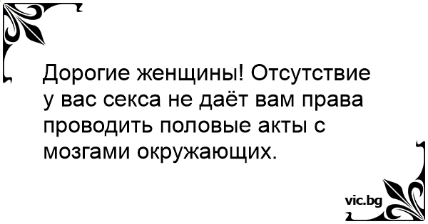 Дорогие женщины! Отсутствие у вас cekca не даёт вам права проводить половые акты с мозгами окружающих.