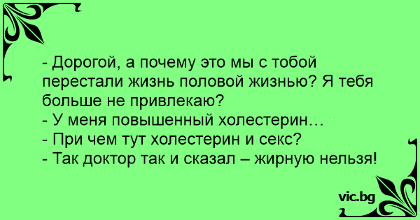 - Дорогой, а почему это мы с тобой перестали жизнь половой жизнью? Я тебя больше не привлекаю?
