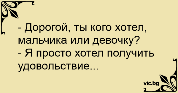 — Тато, а ти кого більше хотів - хлопчика чи дівчинку? — Взагалі-то, синку, я просто хотів приємно провести час ...
