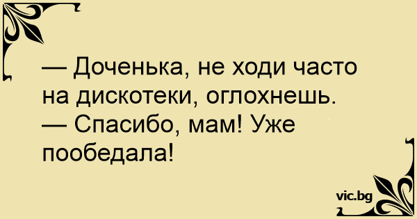 — Доченька, не ходи часто на дискотеки, оглохнешь.