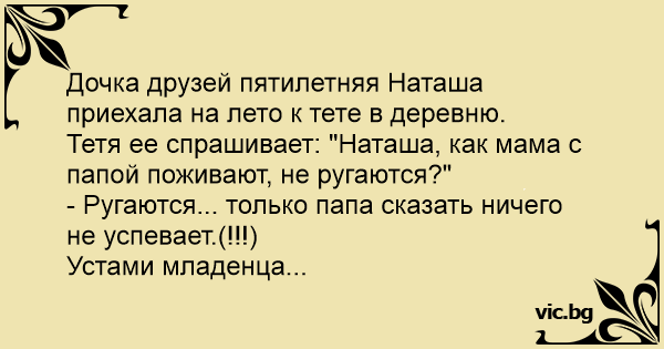 Тетя ее спрашивает: "Наташа, как мама с папой поживают, не ругаются?"