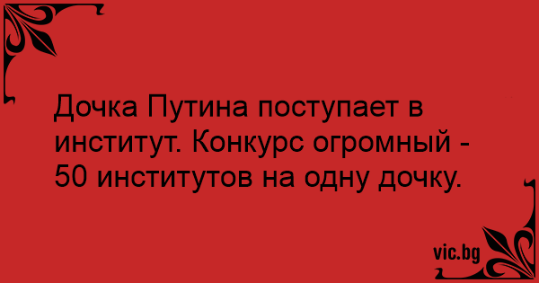 Дочка Путина поступает в институт. Конкурс огромный - 50 институтов на одну дочку.