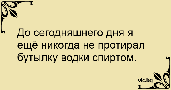 До сегодняшнего дня я ещё никогда не протирал бутылку водки спиртом.