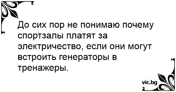 До сих пор не понимаю почему спортзалы платят за электричество, если они могут встроить генераторы в тренажеры.
