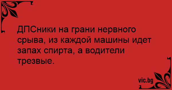 ДПСники на грани нервного срыва, из каждой машины идет запах спирта, а водители трезвые.