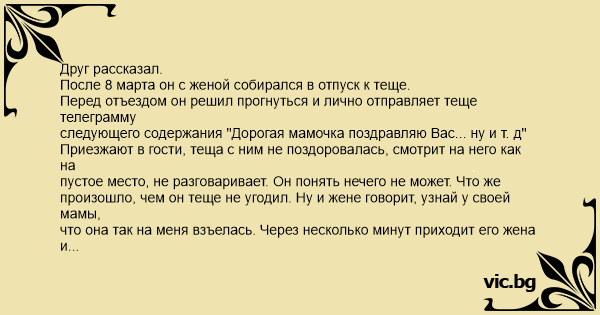 исказив текст телеграммы, ну а теща приняла это как личное оскорбление.