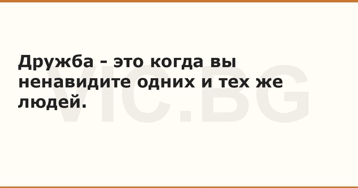 Дружба - это когда вы ненавидите одних и тех же людей.