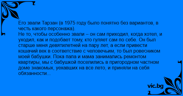 Его звали Тарзан (в 1975 году было понятно без вариантов, в честь какого персонажа).