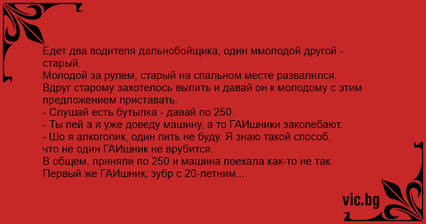 Едет два водителя дальнобойщика, один ммолодой другой - старый.