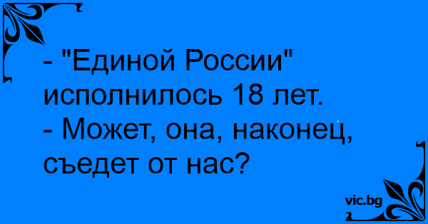- "Единой России" исполнилось 18 лет.<br />- Может, она, наконец, съедет от нас?