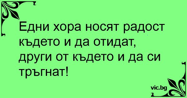 Едни хора носят радост където и да отидат, други от където и да си тръгнат!