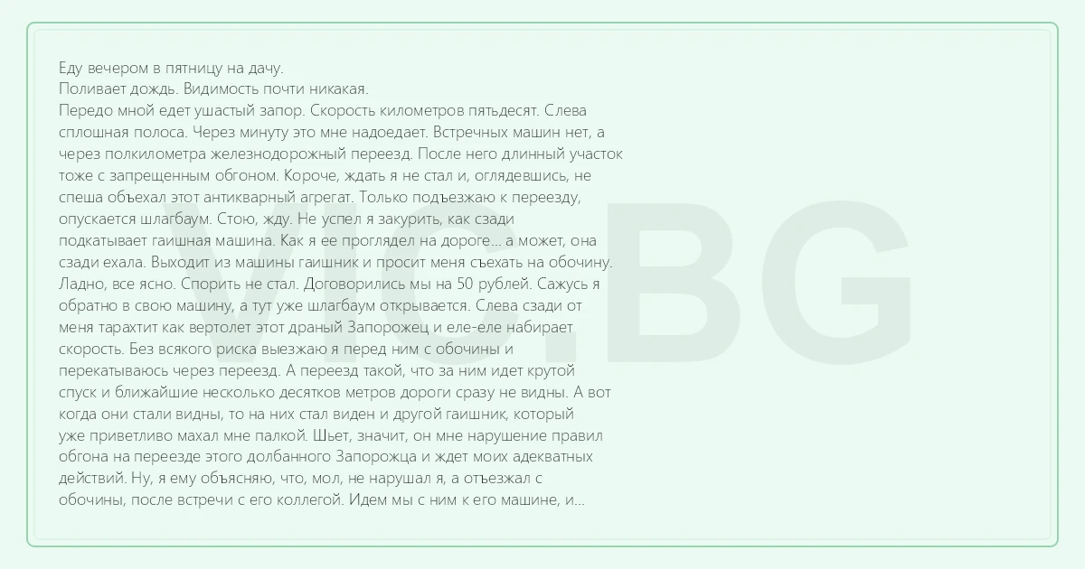 обгона на переезде этого долбанного Запорожца и ждет моих адекватных