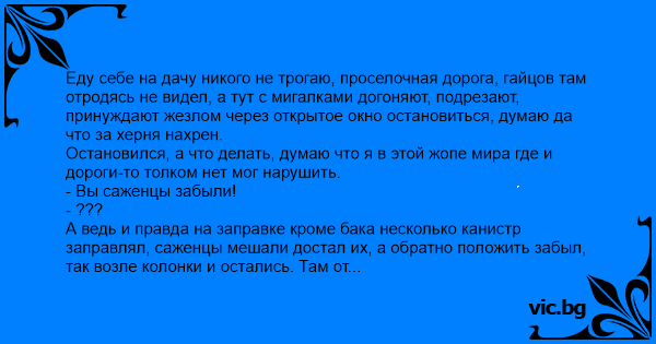 Еду себе на дачу никого не трогаю, проселочная дорога, гайцов там отродясь не видел, а тут с мигалками догоняют, подрезают, принуждают жезлом через открытое окно остановиться, думаю да что за хepня нахрен.