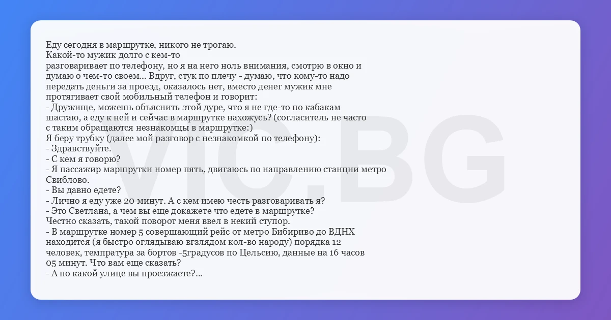 - Это Светлана, а чем вы еще докажете что едете в маршрутке?