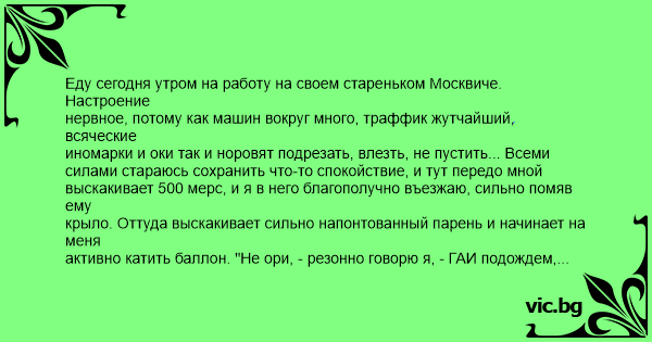 Еду сегодня утром на работу на своем стареньком Москвиче.