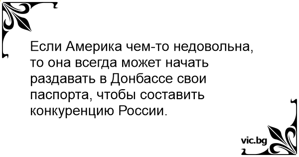 Если Америка чем-то недовольна, то она всегда может начать раздавать в Донбассе свои паспорта, чтобы составить конкуренцию России.