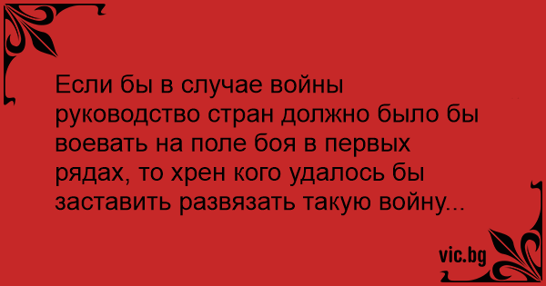 Если бы в случае войны руководство стран должно было бы воевать на поле боя в первых рядах, то хpeн кого удалось бы заставить развязать такую войну...