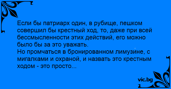 Если бы патриарх один, в рубище, пешком совершил бы крестный ход, то, даже при всей бессмысленности этих действий, его можно было бы за это уважать.