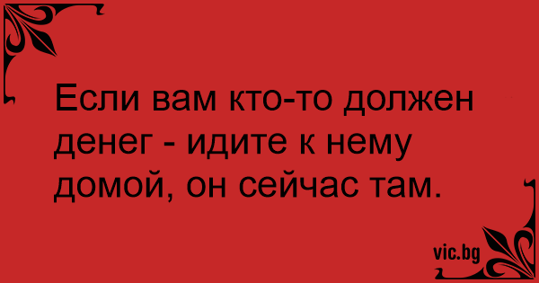 Если вам кто-то должен денег - идите к нему домой, он сейчас там.